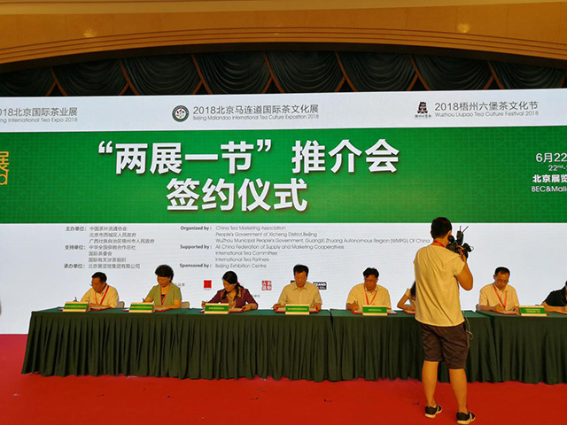 6月22日,由中國(guó)茶葉流通協(xié)會(huì)、北京市西城區(qū)人民政府和廣西壯族自治區(qū)梧州市人民政府聯(lián)合主辦,北京展覽館集團(tuán)有限公司承辦的“2018北京國(guó)際茶業(yè)展·2018北京馬連道國(guó)際茶文化展·2018梧州六堡茶文化節(jié)”在北京展覽館盛大開(kāi)幕。強(qiáng)壽集團(tuán)董事長(zhǎng)李浪輝先生應(yīng)邀參加此次展覽。