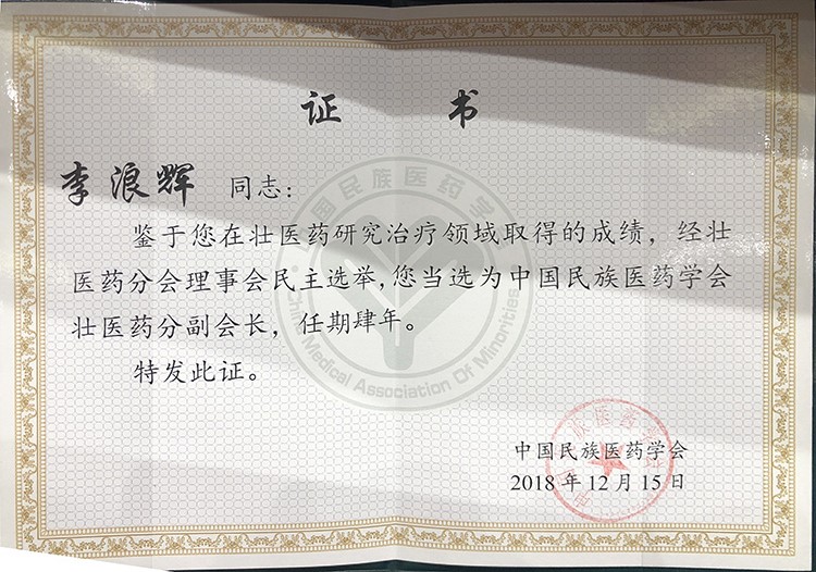 熱烈慶祝,12月15日,強壽集團董事長李浪輝因壯醫(yī)藥研究治療領域取得的成績,經壯醫(yī)藥分會理事會民主選舉,當選為中國民族醫(yī)藥學會壯醫(yī)藥分會副會長!!!