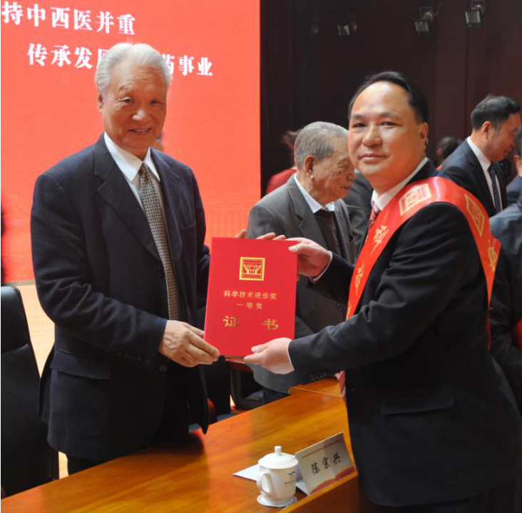 在本次大會上,由十一屆全國政協(xié)副主席陳宗興親自為廣西強(qiáng)壽藥業(yè)集團(tuán)有限公司董事長李浪輝(獲獎項目完成第1人)頒獎。